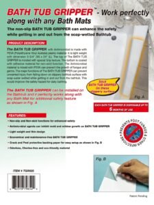 The Sani-Safe Gripper adds targeted grip support to enhance stability in high-risk areas of the bathtub or shower.